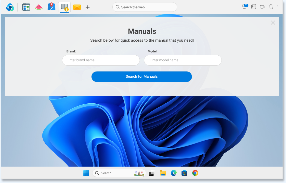 Get all the manuals you need for free. Download Manuals app located at the top of your desktop, along with the browser for easy and free access to manuals!